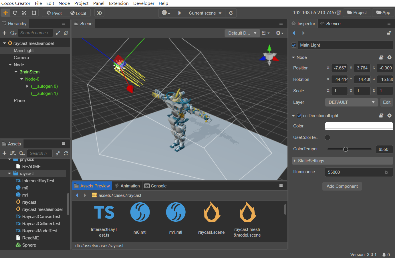 注意:Cocos Creator 目前只支持一个平行光。若同时添加多个,则以最后一个添加的为准。